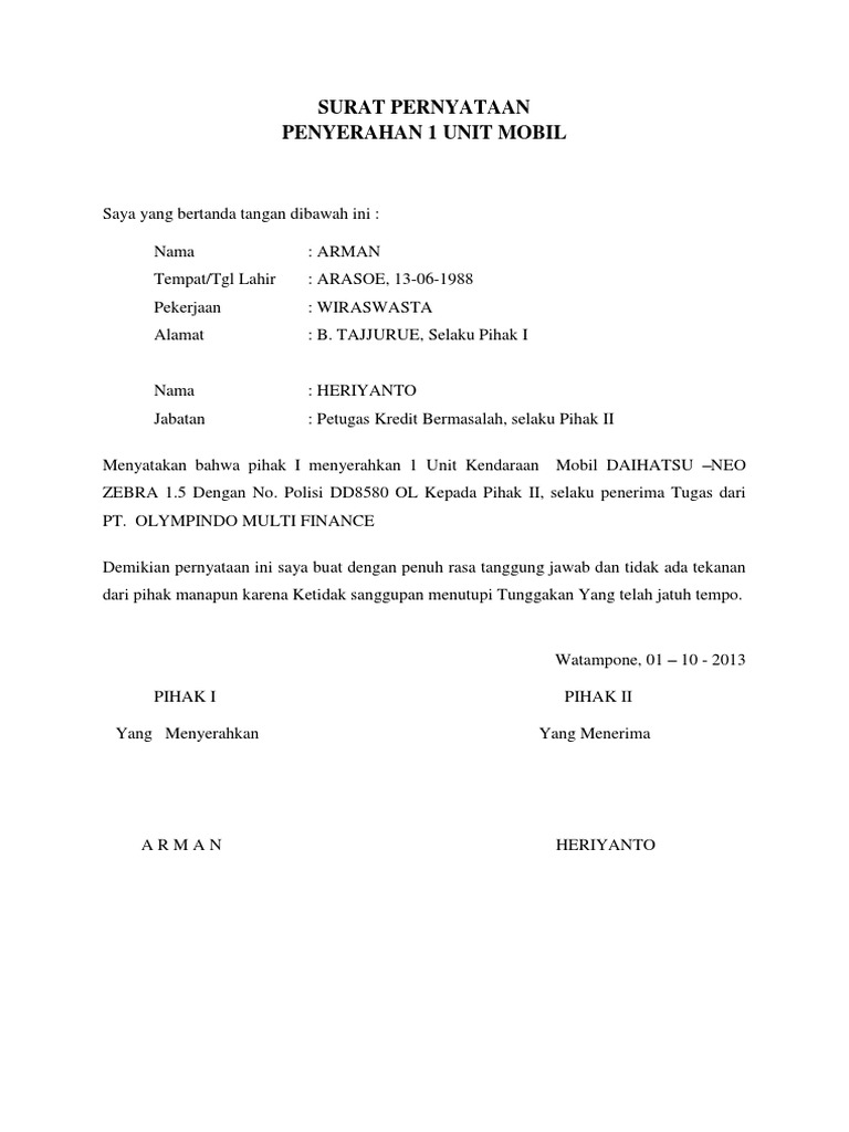 3 Contoh Surat Over Kredit Motor Yang Tepat Dan Benar. Serahan Contoh Surat Rasmi Penyerahan Dokumen. A driving licence is required in.