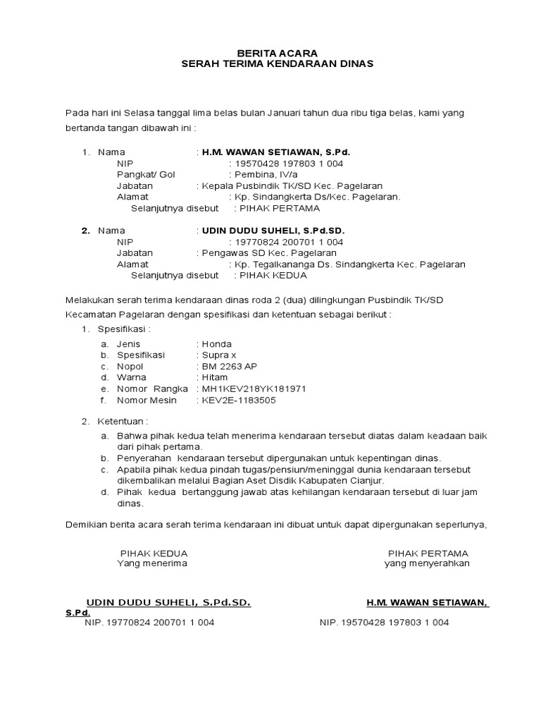 Berita Acara Serah Terima Kendaraan Dinas Pdf